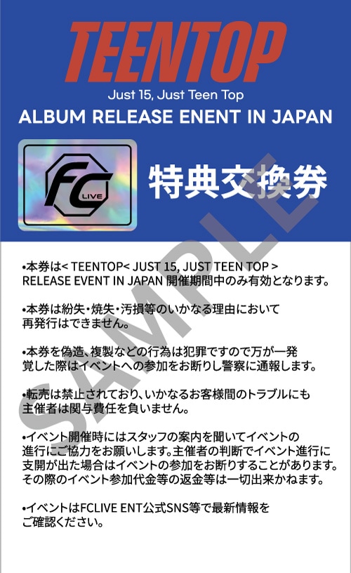 【TEENTOP RELEASE EVENT IN JAPAN】 特典交換券に関するご案内